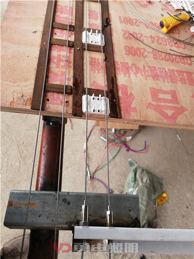 4、采用鋼絲繩安裝方式:對于有承重要求的項目上,不適合采用鋁合金軌道,所以選用了降低風(fēng)阻的鋼絲繩安裝。