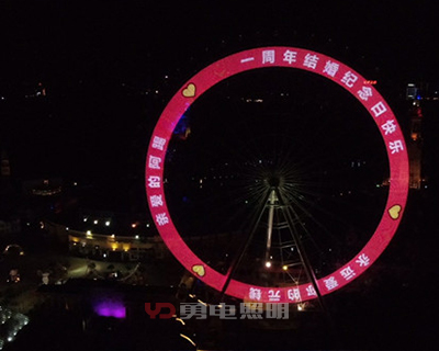 長沙世界之窗摩天輪的環(huán)形LED顯示屏,采用了勇電半定制二次封裝Φ20點光源燈串,燈串沿著環(huán)